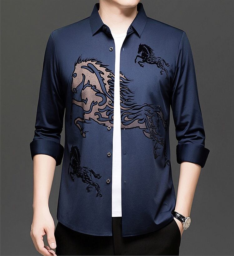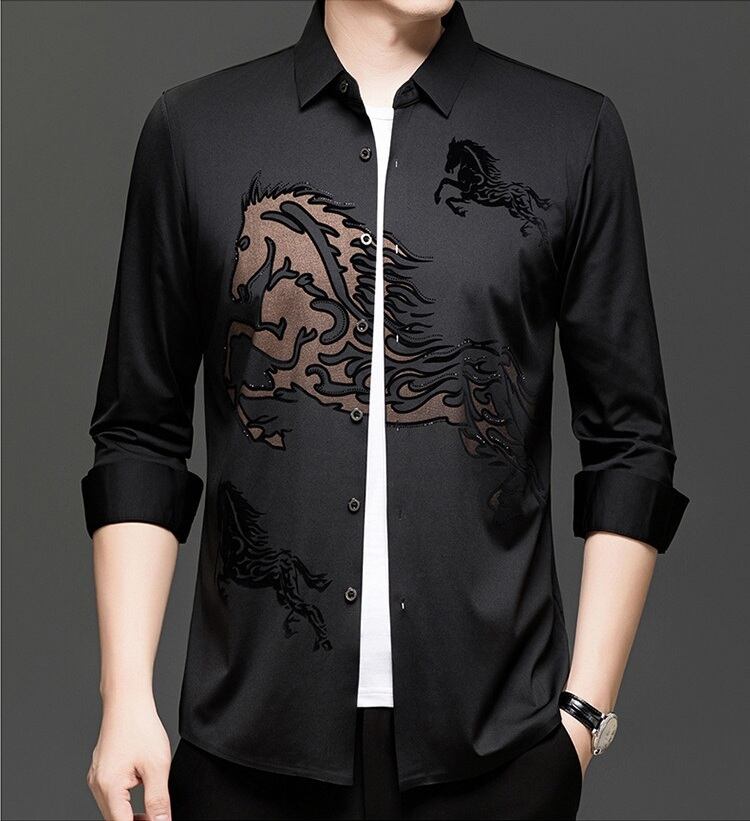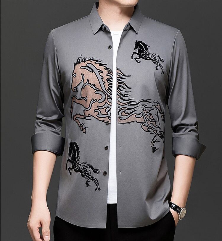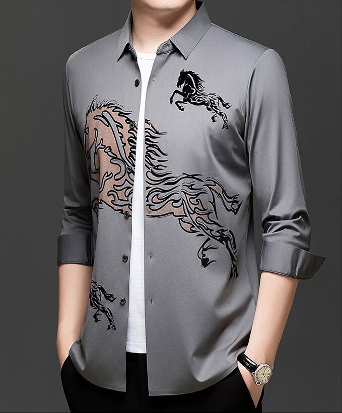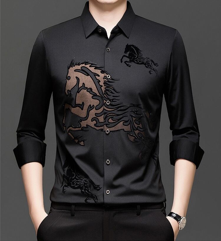 馬モチーフが視線を集める、計算されたデザインシャツ。