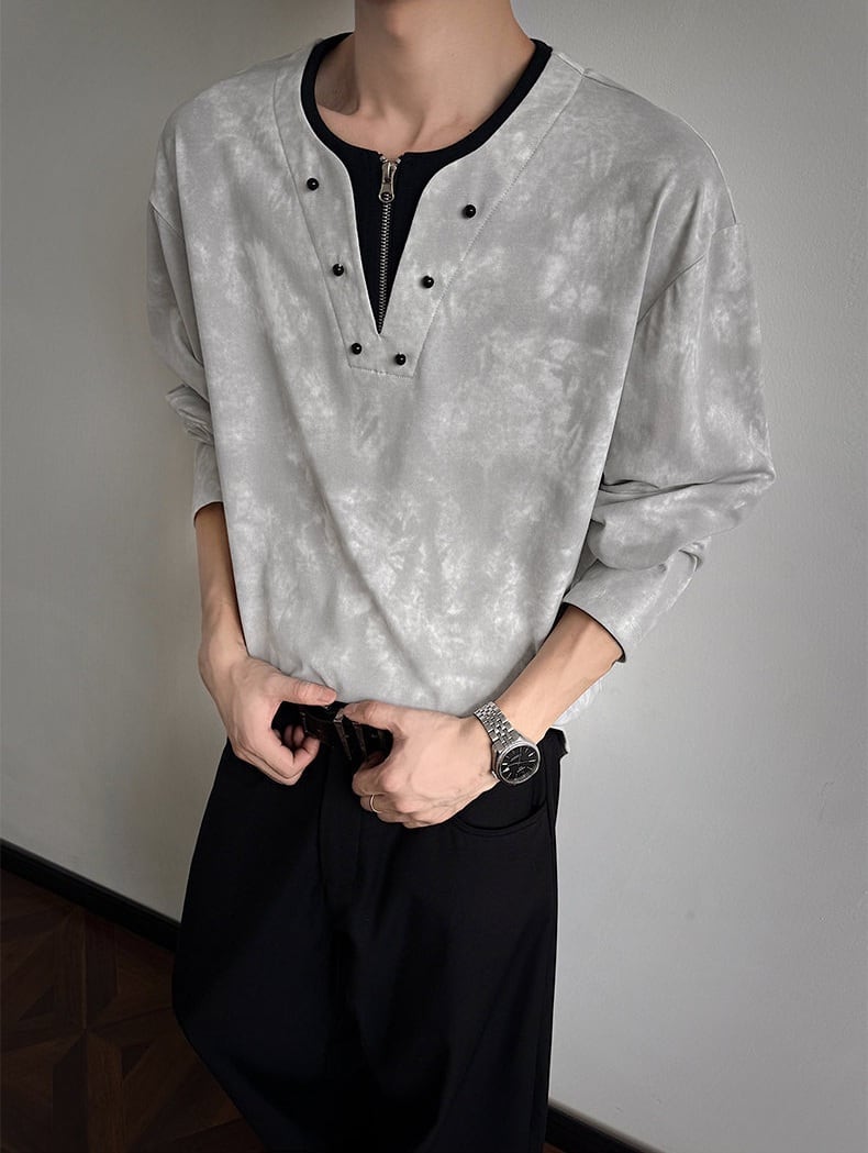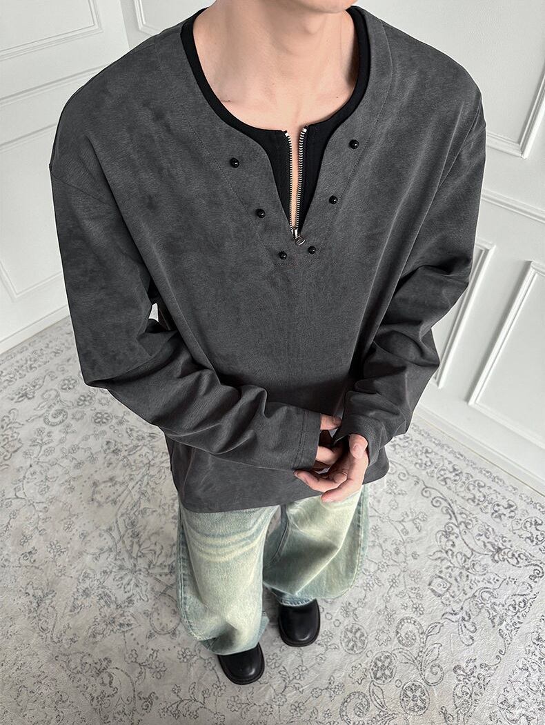 Tシャツ ハーフジッパー カジュアル Vネック 長袖 [A-968536325669]