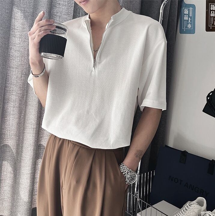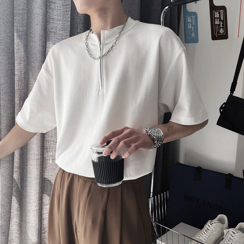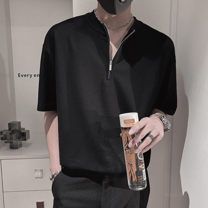 Tシャツ ハーフジッパー ルーズフィット 半袖 [A-773301291345]
