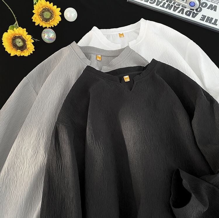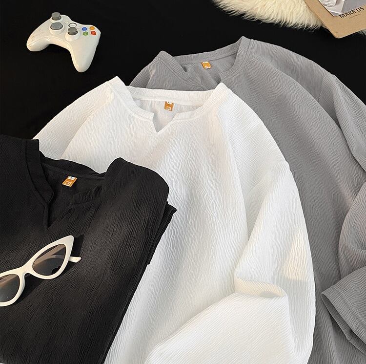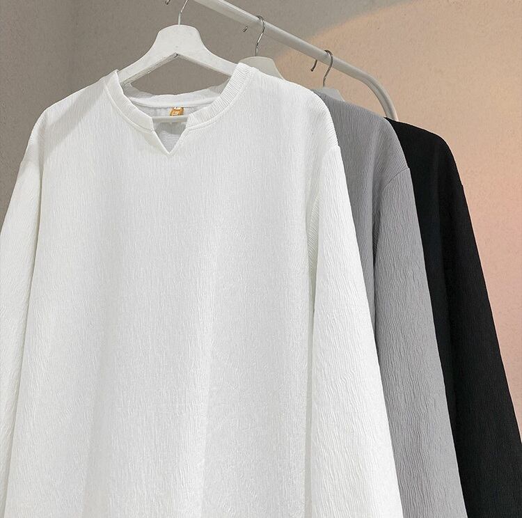 Tシャツ カジュアル Vネック 無地 長袖 [A-816598307989]