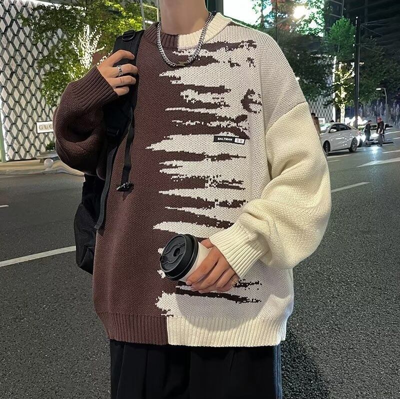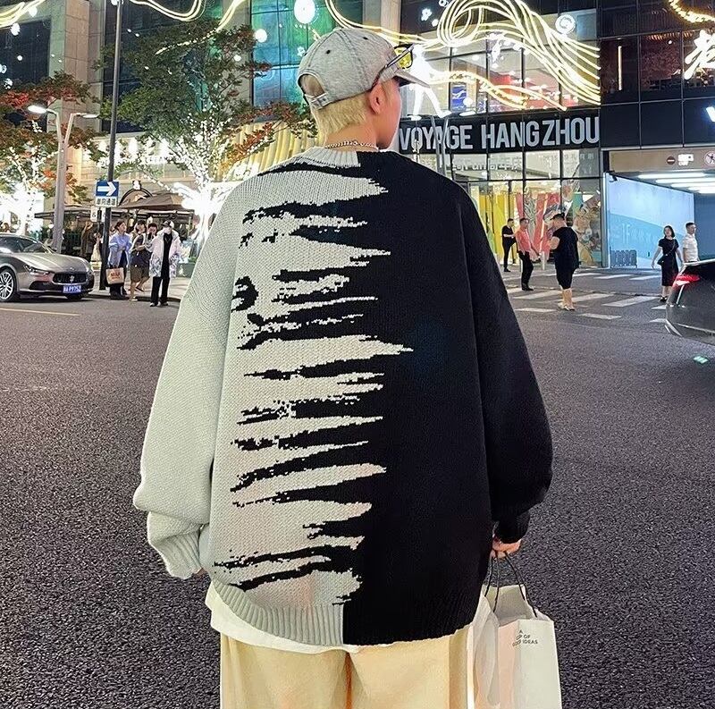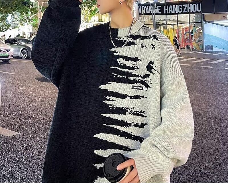 バイカラーのコントラストが視線を惹きつけるデザインニット。