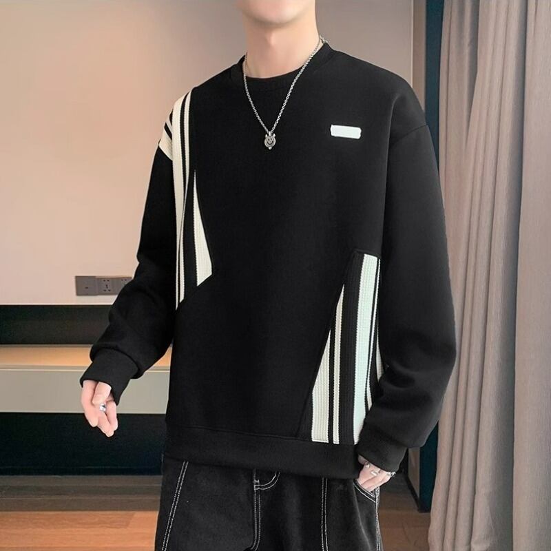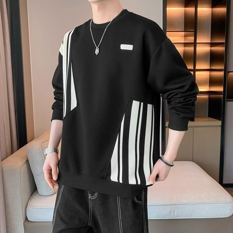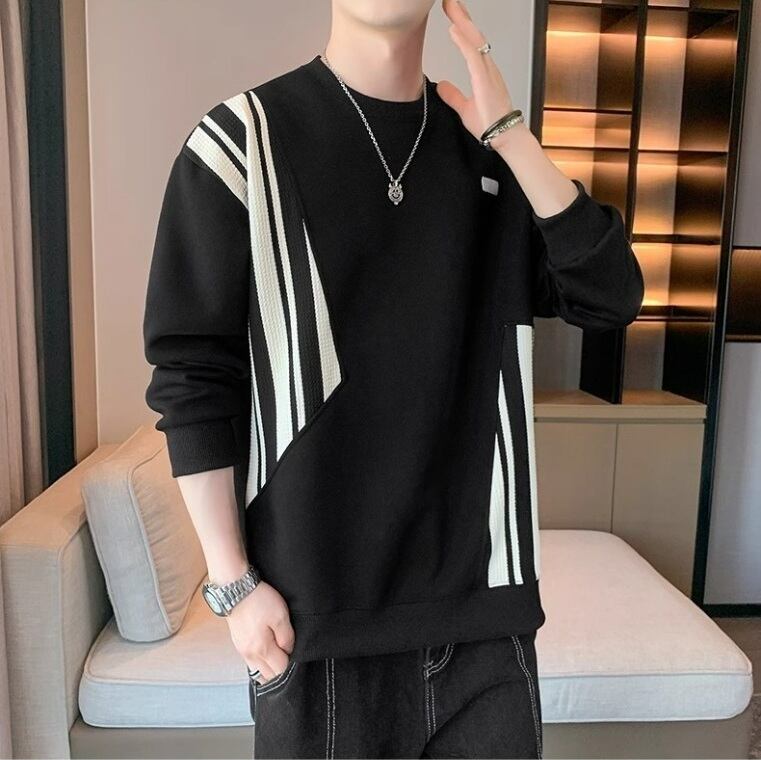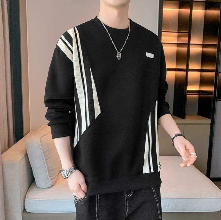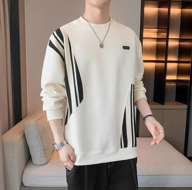 Tシャツ ストライプパッチ カジュアル 長袖 [A-973970479874]