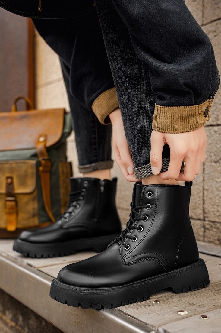 無駄のない無骨なデザインと厚みのあるアウトソールが、足元から存在感を生むレースアップブーツ。