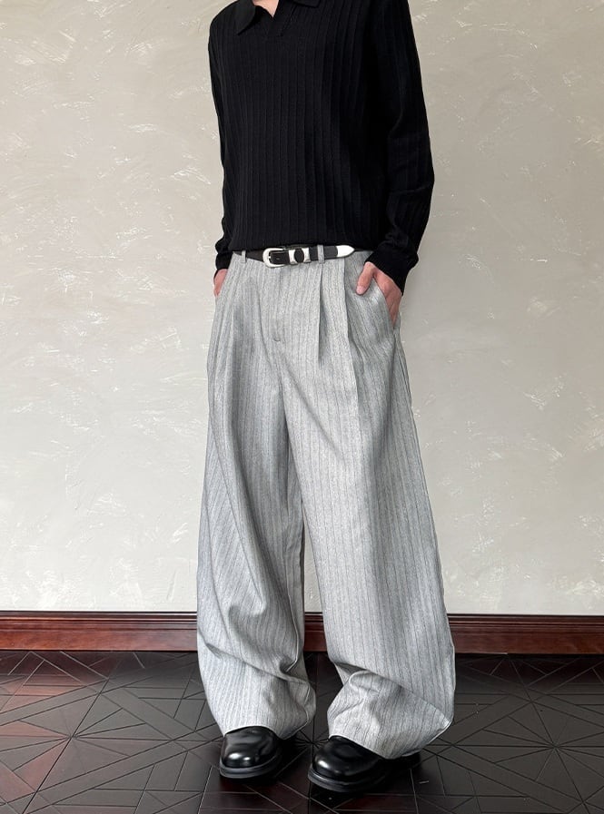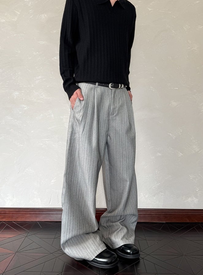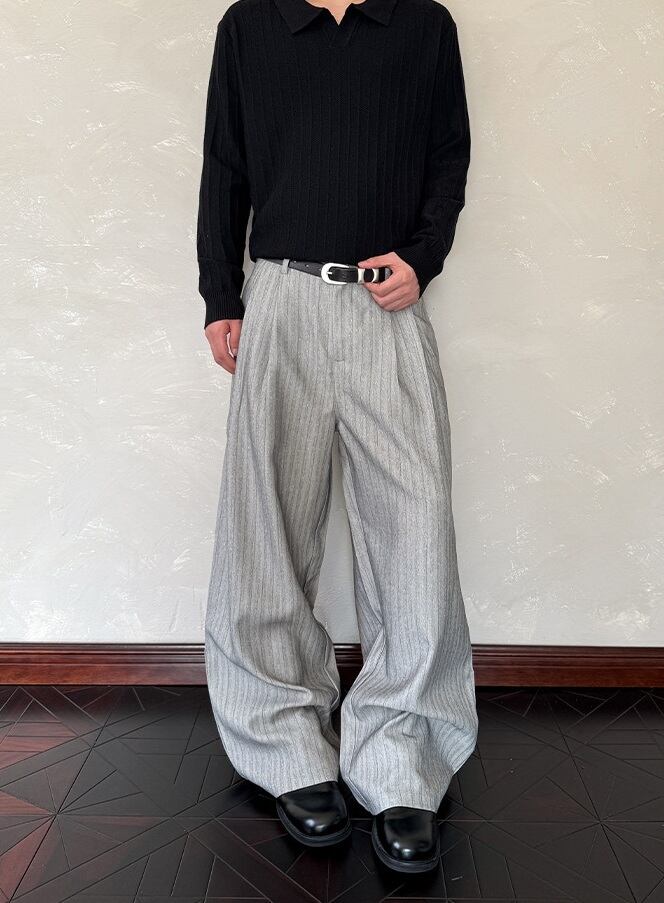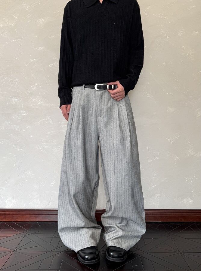ワイドな落ち感がラフさを出しつつ、ストライプが全体を引き締めてくれる万能パンツ。