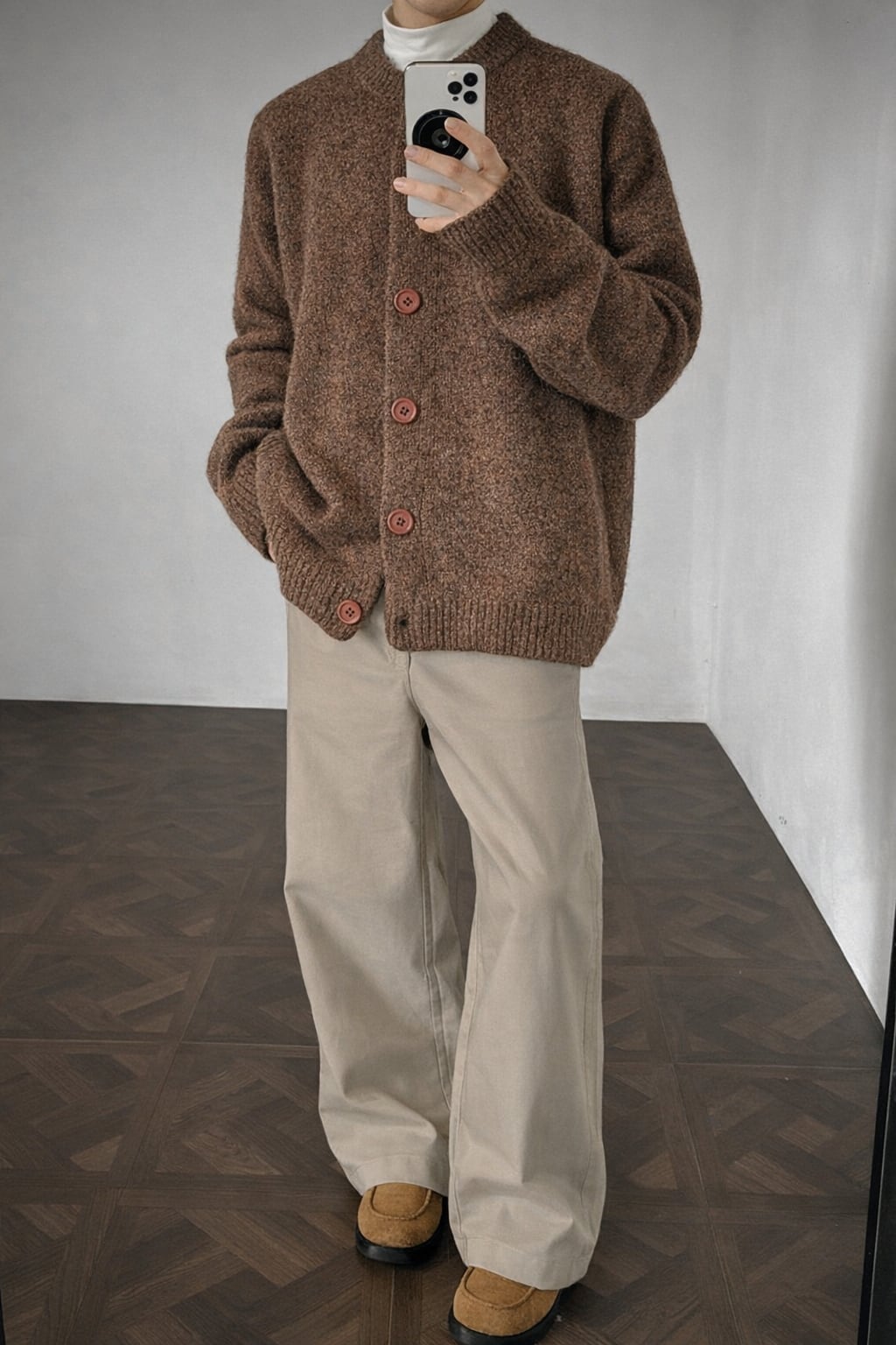 温かみのある色味とボタンのアクセントが、どこか懐かしいレトロ感を演出。